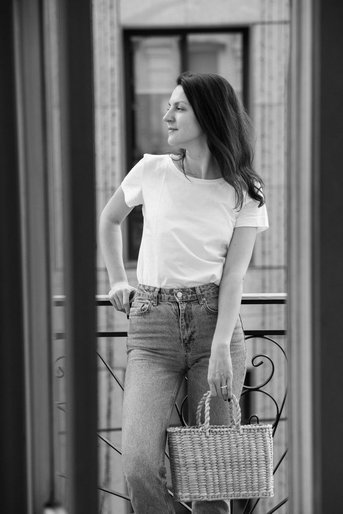 Один із луків Джейн Біркін, який нам дуже подобається, – це базове комбо: біла футболка, джинси та плетений кошик. Начебто суперпросто, але водночас цілісно і по-французьки! Ми спробували повторити цей образ, щоб нагадати вам про те, наскільки геніальними можуть бути класичні речі, які, впевнені, є в кожному гардеробі.